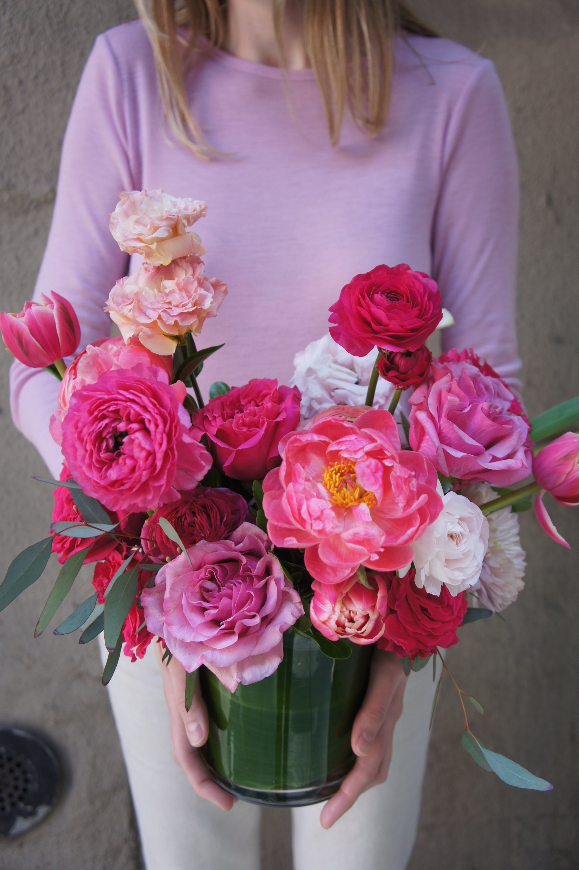 Beautiful hot pink flower arrangement. This arrangement is a kaleidoscope of pink color that any mom would enjoy!